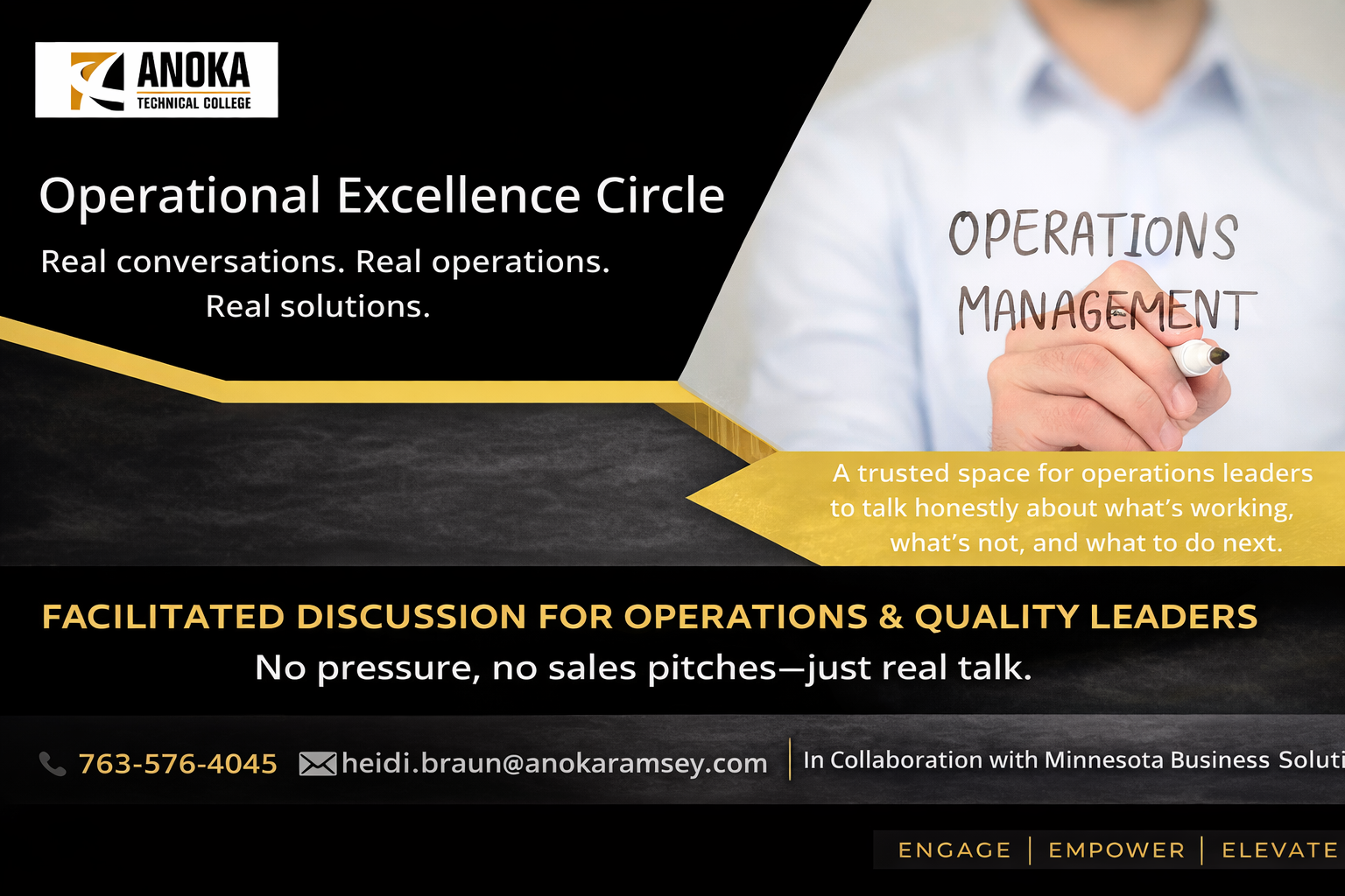 Course Title In collaboration with Minnesota Business Solutions Real conversations. Real operations. Real solutions. A small, peer-led discussion circle for operations and quality leaders to talk openly about real challenges, share experiences, and explore practical ways forward — without pressure or sales pitches. Facilitated by:An experienced operations and quality professional with hands-on insight into what works—and […]